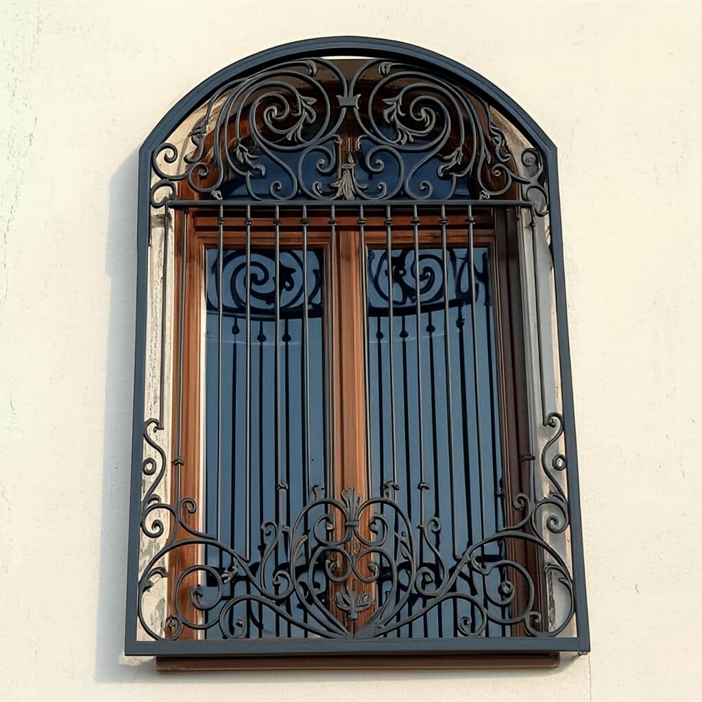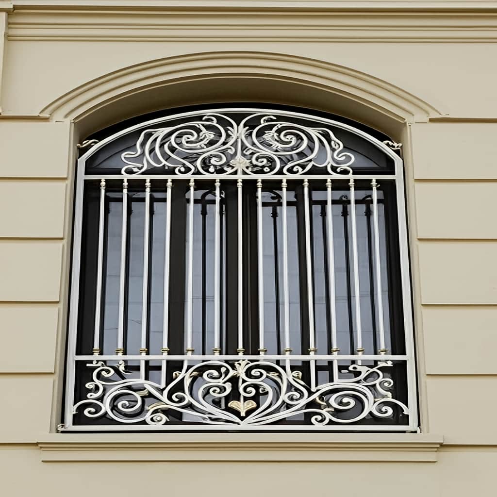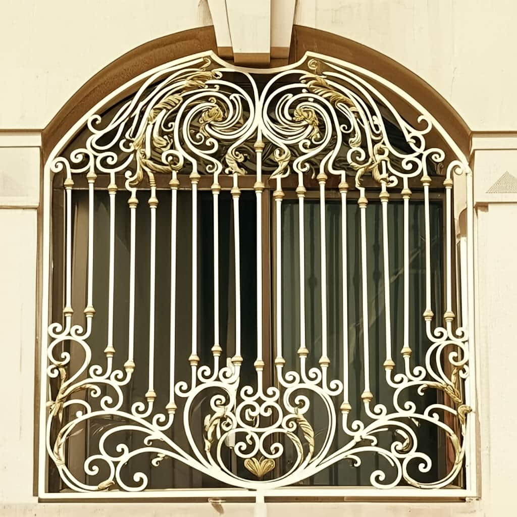 طراحی سلطنتی با قوس تاج دار و جزئیات فرفورژه, هماهنگی کامل با نمای رومی و کلاسیک ایجاد می کند.